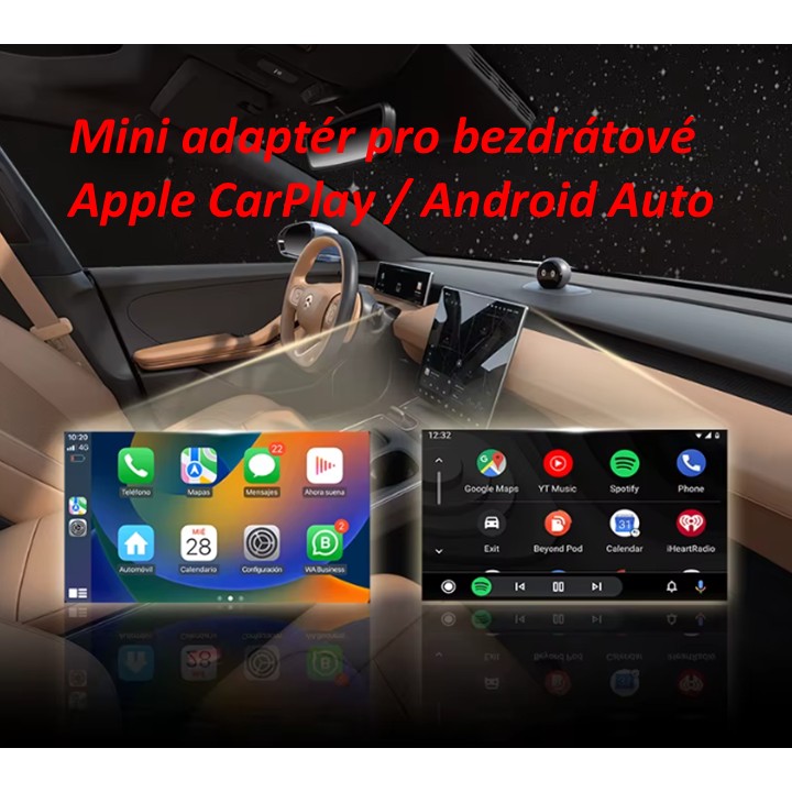 Mini univerzální mini bezdrátový adaptér Apple - Apple CarPlay využijete u automobilů s OEM jednotkou podporující Apple CarPlay připojení kabelem.