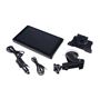 Obsah balení: Monitor, držák s přísavkou, držák pro pevnou montáž, napájecí kabel s CL koncovkou, AUX kabel.