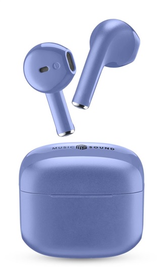Krátký popis TWS bezdrátová pecková sluchátka Music Sound SWAG, blankytně modrá