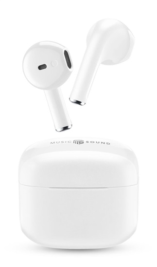Krátký popis TWS bezdrátová pecková sluchátka Music Sound SWAG, bílá