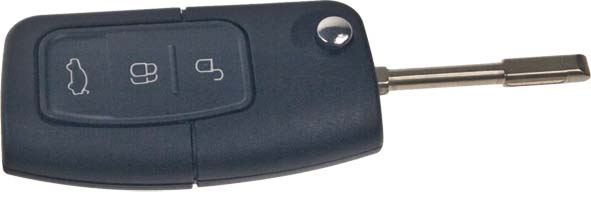 Náhradní vystřelovací autoklíč s dálkovým ovladačem pro vozy Ford. Součástí klíče je planžeta, dálkové ovládání centrálního zamykání se třemi tlačítky a čip 4D60 pro imobilizér (transpondér). Náhrada originálního ovladače.
