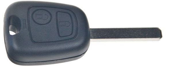 Náhradní autoklíč s dálkovým ovladačem pro vozy Peugeot. Součástí klíče je planžeta, dálkové ovládání centrálního zamykání se dvěmi tlačítky a čip ID 46 pro imobilizér. Náhrada originálního ovladače.