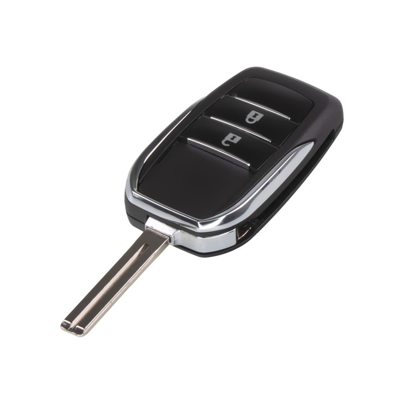 Náhradní obal vystřelovacího klíče pro vozy Toyota s 2-tlačítkovým nevystřelovacím klíčem (bez elektroniky a čipu imobilizéru). Slouží pro změnu ze staršího nevystřelovacího klíče na novější verzi s vystřelovacím klíčem.