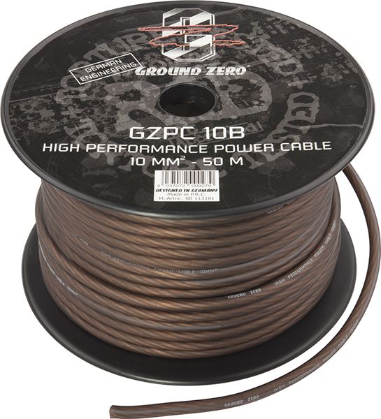 Krátký popis značkový napájecí kabel Ground Zero pro zesilovač, průřez 10mm2, transparentní černý, prodáváno po metrech