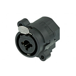 3-pólový XLR konektor, samice / 1/4" stereo jack, bez spínacího kontaktu, PCB montáž vertikální. Hybridní panelový konektor kombinující 3-pólový XLR konektor a jack 1/4".