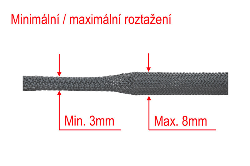 Ochranný oplet slouží pro mechanickou, flexibilní ochranu kabelových svazků. Vyrobené z polyesterových vláken spletených do kříže, které umožňují flexibilní roztažení a obepnutí nerovností v kabelovém vedení.