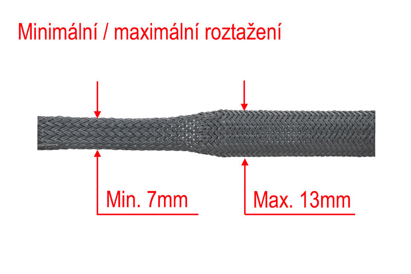 Ochranný oplet slouží pro mechanickou, flexibilní ochranu kabelových svazků. Vyrobené z polyesterových vláken spletených do kříže, které umožňují flexibilní roztažení a obepnutí nerovností v kabelovém vedení.