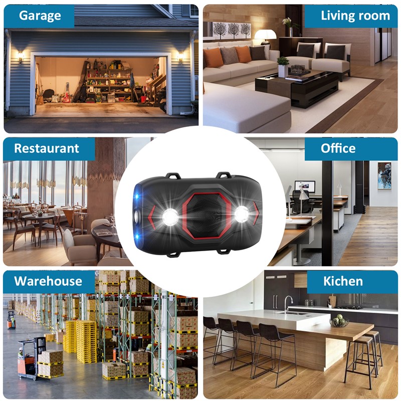 Tento přístroj vyhání a odpuzuje nejen hlodavce, ale také kočky. Hluk (zvuk), který přístroj vysílá, lidské ucho téměř neslyší. V různých cyklech vysílá tento přístroj velmi vysoký tón (o frekvenci 15-50 kHz / -25kHz). Zároveň odpuzuje pomocí blikajícího světla.