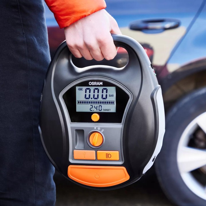 Dobíjecí digitální kompresor na huštění pneumatik a vzduchová pumpa OSRAM TYREinflate 6000 je akumulátorový a dobíjecí kompresor na nafukování pneumatik s Li-Ion baterií, která je ideálním společníkem pro kempování a výlety.