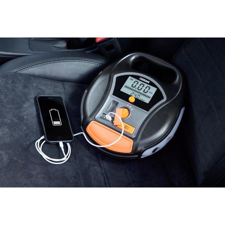 Díky funkci powerbanky lze zařízení OSRAM TYREinflate 6000 používat také jako nabíječku elektronických zařízení, např.: mobilního telefonu.
