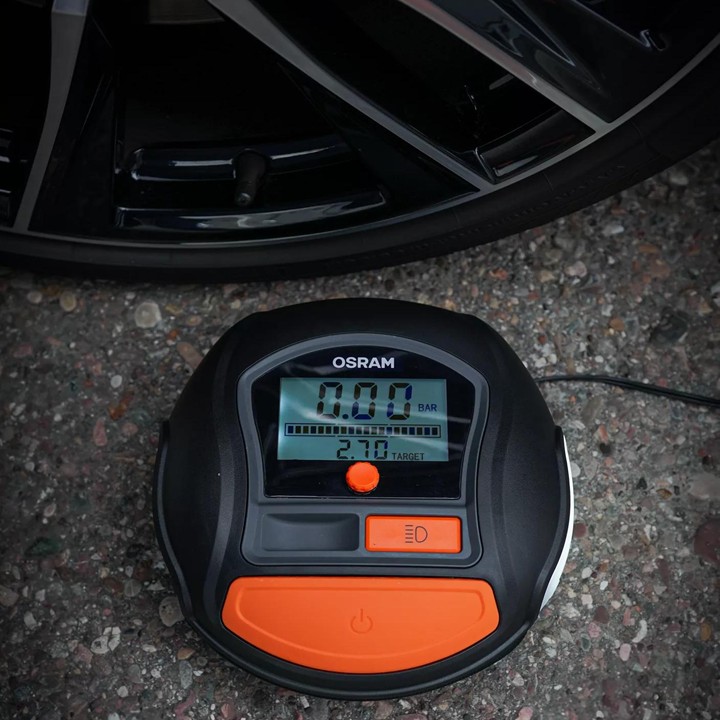 Rychlý kompresor s navíjecím kabelem OSRAM TyreInflate 1000 je rychlý digitální kompresor s podsvíceným digitálním displejem pro snadné a přesné odečty tlaku.