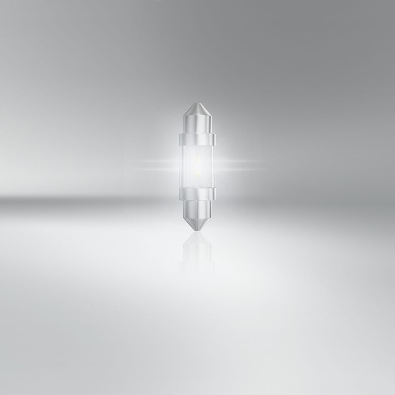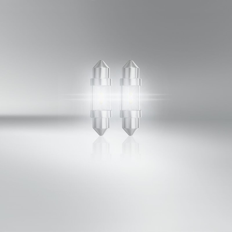 NIGHT BREAKER LED C5W ECE poskytuje extra jasné (2), cool bílé světlo s barevnou teplotou až 6000 Kelvinů, které dodává elegantní a moderní vzhled.