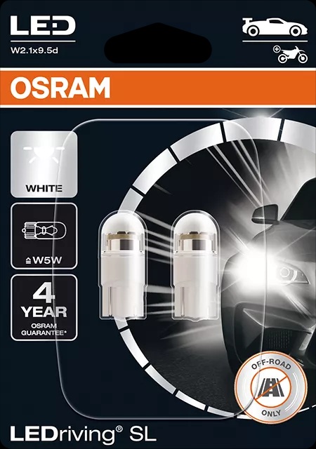 Náhradní žárovky LEDriving SL W5W nabízejí moderní a intenzivní světlo s teplotou chromatičnosti až 6 000 K.