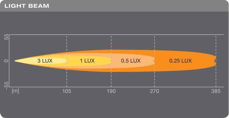 • vzdálenost s intenzitou osvětlení 1lx: 190 m