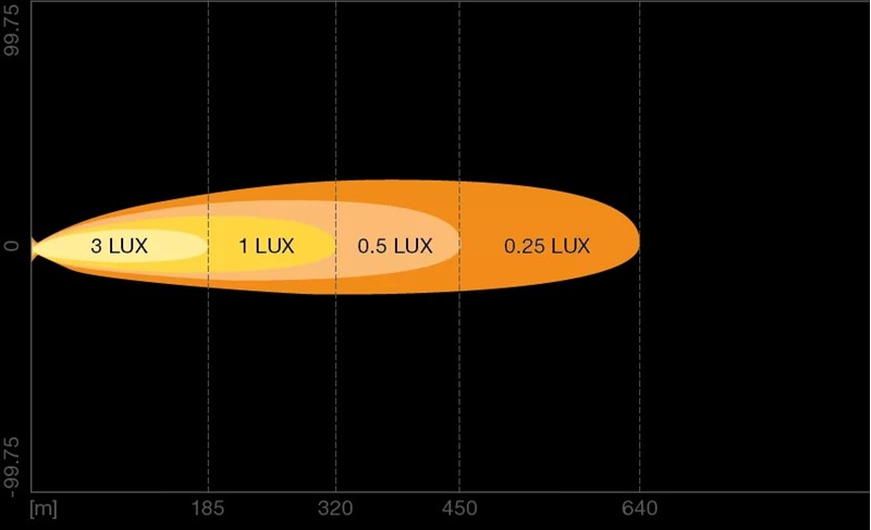 • vzdálenost s intenzitou osvětlení 1lx: 320 m