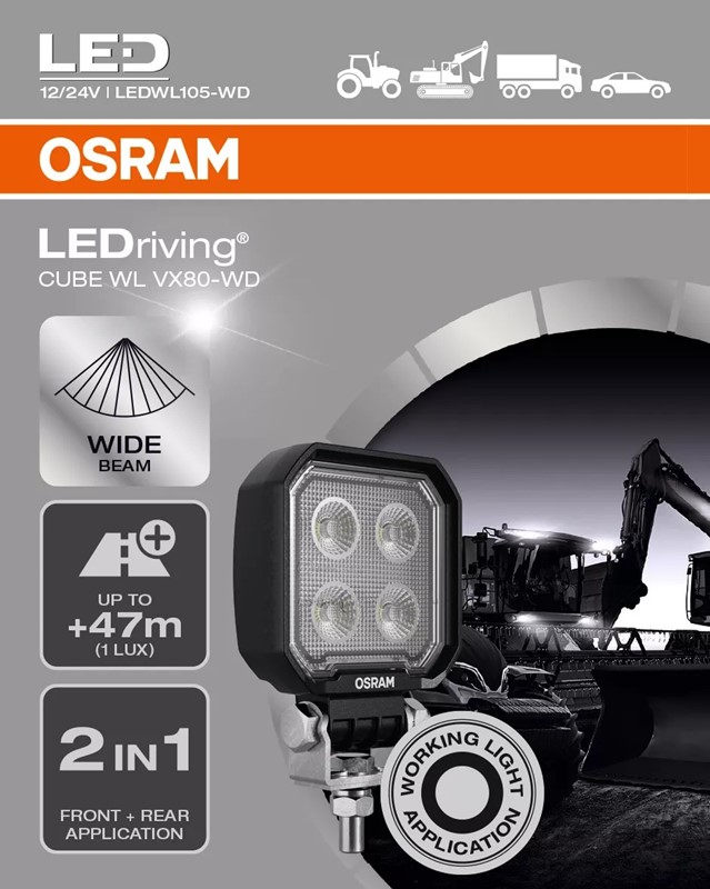 S OSRAM LEDriving Cube WL VX80-WD dosáhnete působivého osvětlení na tmavých polních a lesních cestách, v terénu i mimo zpevněné cesty.
