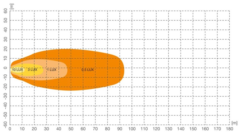 • vzdálenost s intenzitou osvětlení 1lx: 47 m