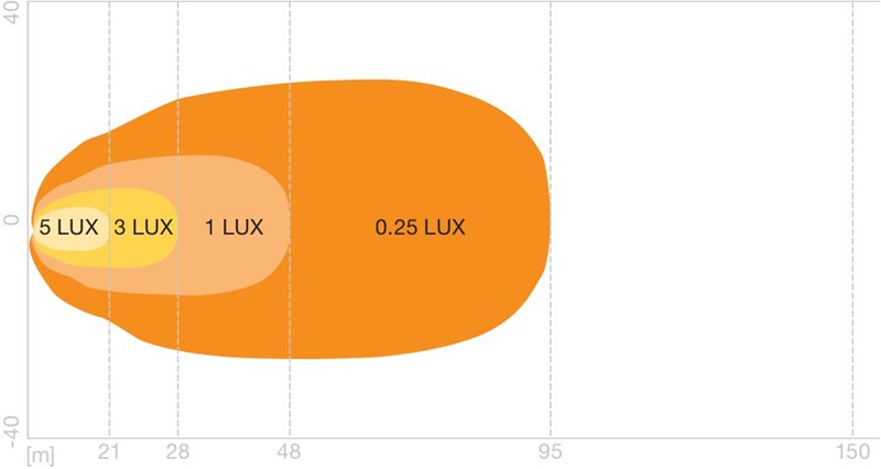 • vzdálenost s intenzitou osvětlení 1lx: 48 m