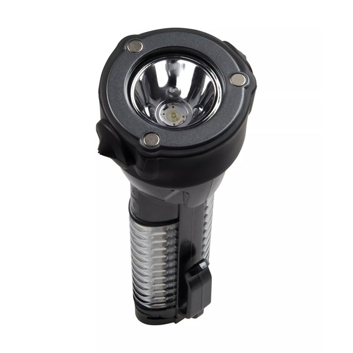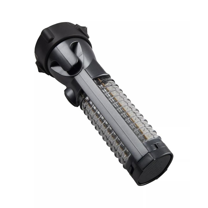 Tato multifunkční kapesní svítilna má silné LED světlo a neklouzavý povrch odolný vůči nečistotám.