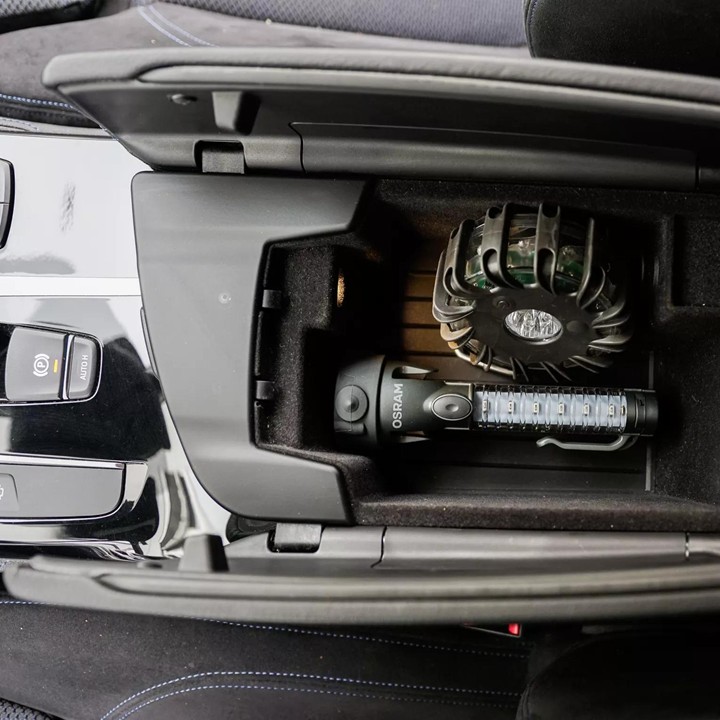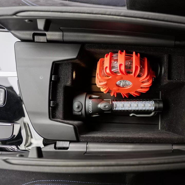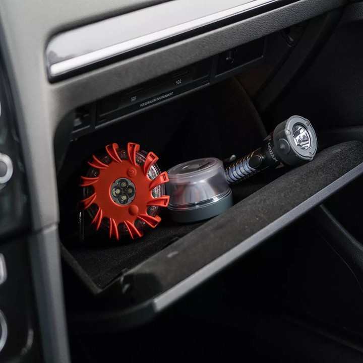 Je vybavena 12 žlutými blikajícími LED diodami a tak se může jednoduše přeměnit z kapesní svítilny na svítilnu pro vysílání varovných signálů v nebezpečných situacích. Kromě toho obsahuje tento všestranný pomocník také nouzové kladívko k rozbíjení čelního skla a řezák bezpečnostních pásů.