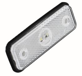 Krátký popis Přídavné přední obrysové (poziční) bílé LED světlo s odraznou plochou, vhodné k osvětlení nákladních vozidel, kamionů, návěsů   Technické parametry • napájecí napětí: 12-24 V (20 mA při 13,8 V) • 3 vysoce svítivé LED diody • homologace: ECE R7 • rozměry: 96 x 31 mm • rozteč šroubů: 69 mm • gumové těsnění • do montážního otvoru o průměru 20 mm a hloubce 14 mm