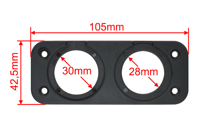 - průměr vnitřního otvoru: 30mm (USB zásuvka nebo Volt metr  + 28mm (pro CL zásuvku)