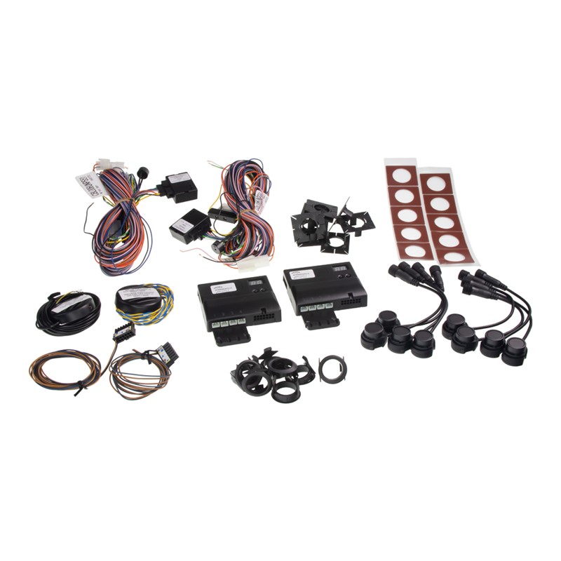 Parkovací asistent FBSN-8D se 4 senzory do zadního a 4 senzory do předního nárazníku. Součástí balení parkovacího asistentu je adaptér pro připojení k OEM autorádiím a navigacím ve vozech VW / Škoda / Seat. Adaptér umožňuje grafické zobrazení údajů z parkovacího systému na displeji autorádia, stejně jako originální parkovací systém. Adaptér komunikuje s autorádiem přes CAN-BUS sběrnici. Po dokončení montáže je nutné aktivovat ve voze parkovací systém pomocí originální diagnostiky VAS, VCDS (VW/Škoda/Seat).