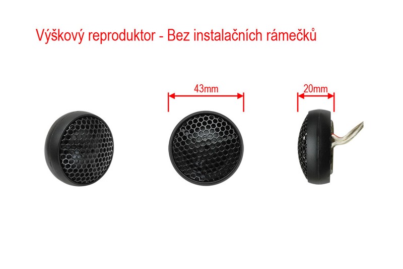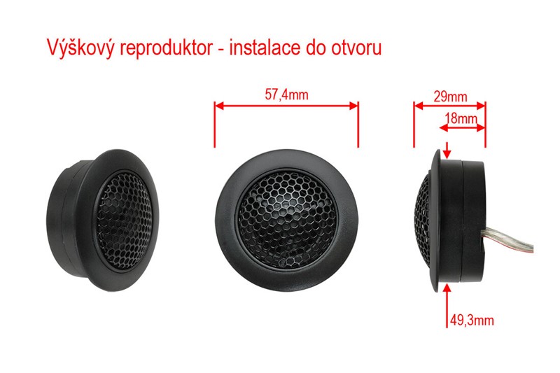 Výškový reproduktor má 25mm hedvábnou kalotu s neodymovým magnetem a výkonem 20 W RMS / 40 W Max. Výhybka nabízí 2 úrovně nastavení (0 / -2 dB) a kompletní sadu montážních doplňků pro zapuštěnou nebo povrchovou instalaci.