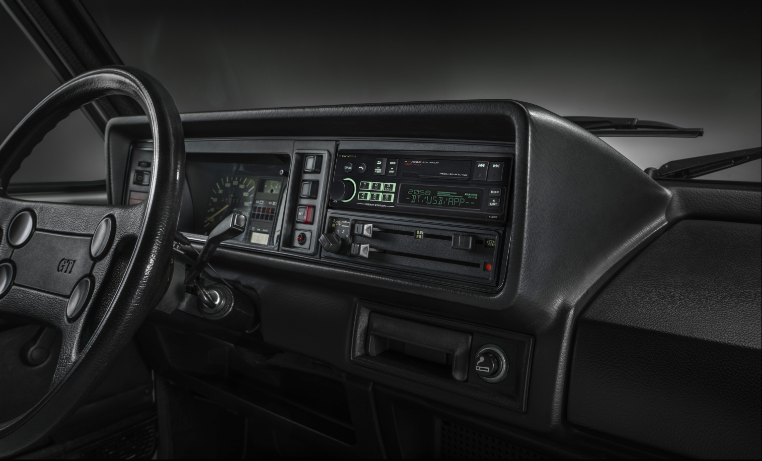 Pod touhle retro fasádou najdete všechny současné moderní funkce: vestavěný Bluetooth pro hands-free volání a bezdrátové přehrávání (HFP, A2DP, AVRCP), DAB+ digitální rádio vedle klasického FM příjmu, RGB multibarevné podsvícení tlačítek a displeje , a také aplikaci Pioneer Smart Sync, která umožňuje pohodlné ovládání pokročilých audio funkcí přímo ze smartphonu.
