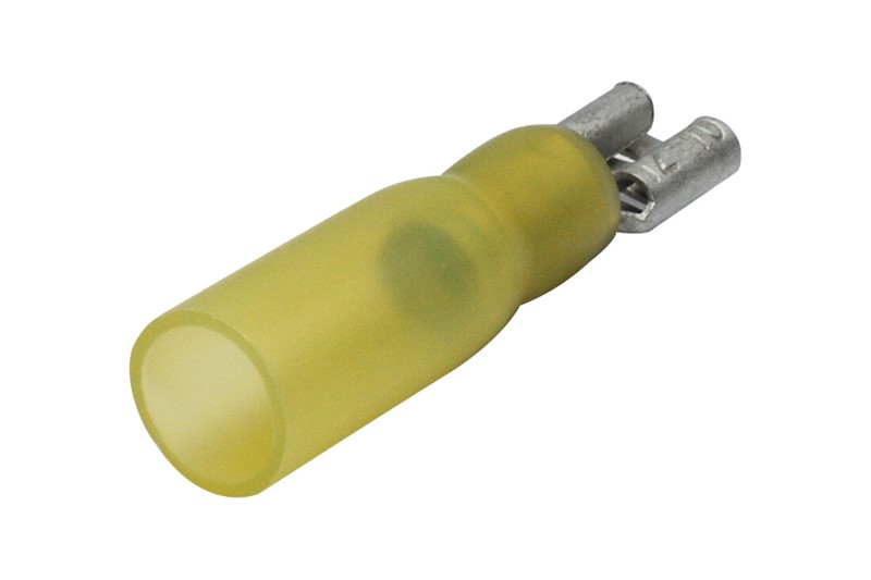 Poloizolovaný konektor faston - samice plochá 6,3 x 0,8mm izolovaná teplem smrštitelnou trubicí s lepidlem.