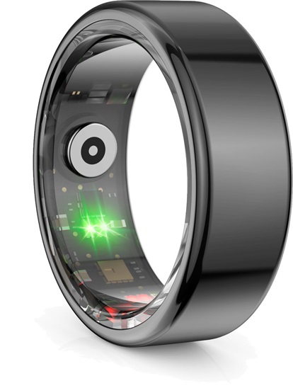 Krátký popis Chytrý prsten-nerez ocel/plast, kompatibilita Android/iOS, měření tlaku, okysličení krve, stresu, monitorování spánku, kroky a sportorvní režimy, Bluetooth 5.0, voděodolnost IP68, velikost 10 - O19.8mm/obvod 62.1 mm, magnetický nabíjení kabel USB, výdrž b