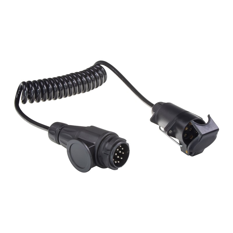 Praktický propojovací spirálový kabel zakončený 1x zástrčkou 13pin / 12 V + 1x zásuvkou 7pin / 12 V.