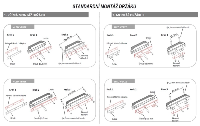 • synchronizace/střídání s dalšími LED světly stejného typu (až 14 světel)