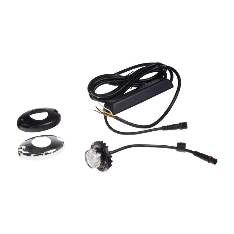 Krátký popis Přídavné oranžové vnější výstražné LED světlo.   Technické parametry: • 8x LED 3535LED • 36 režimů výstražného problikávání • možnost synchronizace s dalšími světly stejného typu • v balení 2 kryty, černý a chromový • minimální odběr proudu • napájecí napětí 12/24 V • homologace ECE R10, R65 • rozměry: 65 x 46 x 24 mm (včetně krytu) • rozměry: ø39 x24 mm (samotné světlo) • rozteč montážních šroubů 54 mm • také možná montáž do otvoru ø25 mm