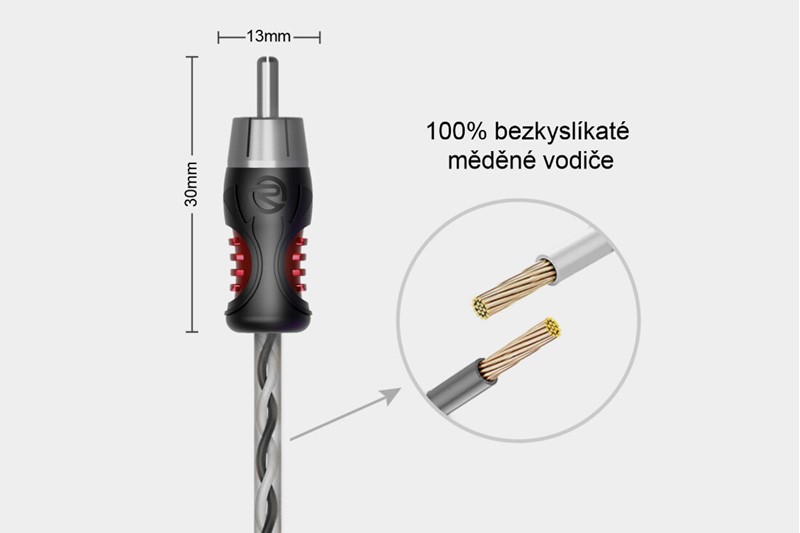 • 99,99% bezkyslíkatá měď (OFC) – vícežilové měděné vodiče poskytují špičkovou vodivost a minimální ztrátu kvality.