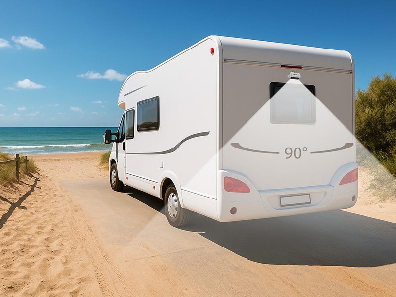 • Pokročilá technologie nočního vidění umožňuje viditelnost až do vzdálenosti přibližně 12 metrů i v úplné tmě (0 luxů). Za tímto účelem couvací kamera automaticky zapíná své výkonné 18 infračervených LED diod pro noční vidění.