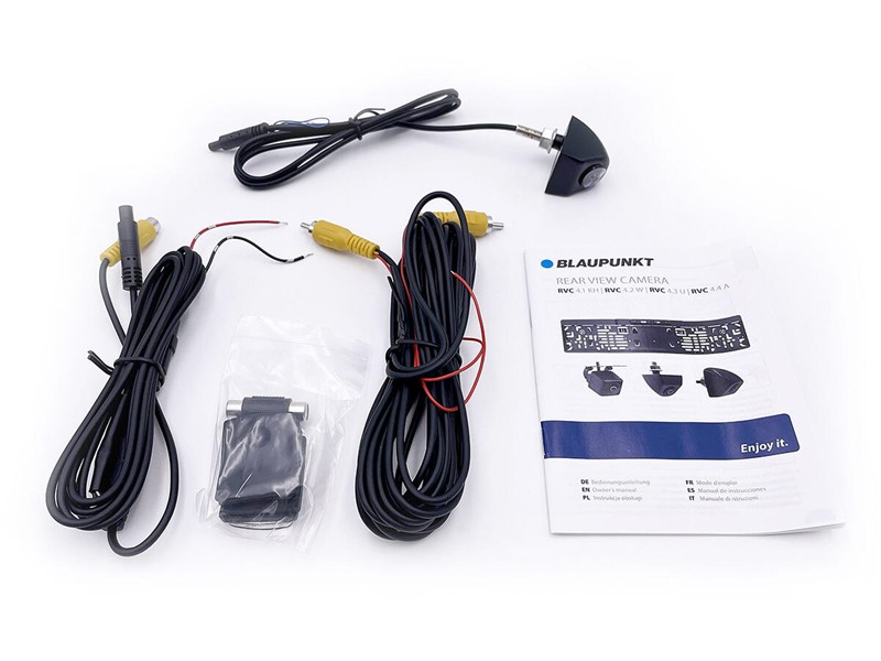 • - Rozsah dodávky: kamera, 2 m připojovací kabel, 6 m prodlužovací kabel, RCA adaptér, lepicí podložky, klíny