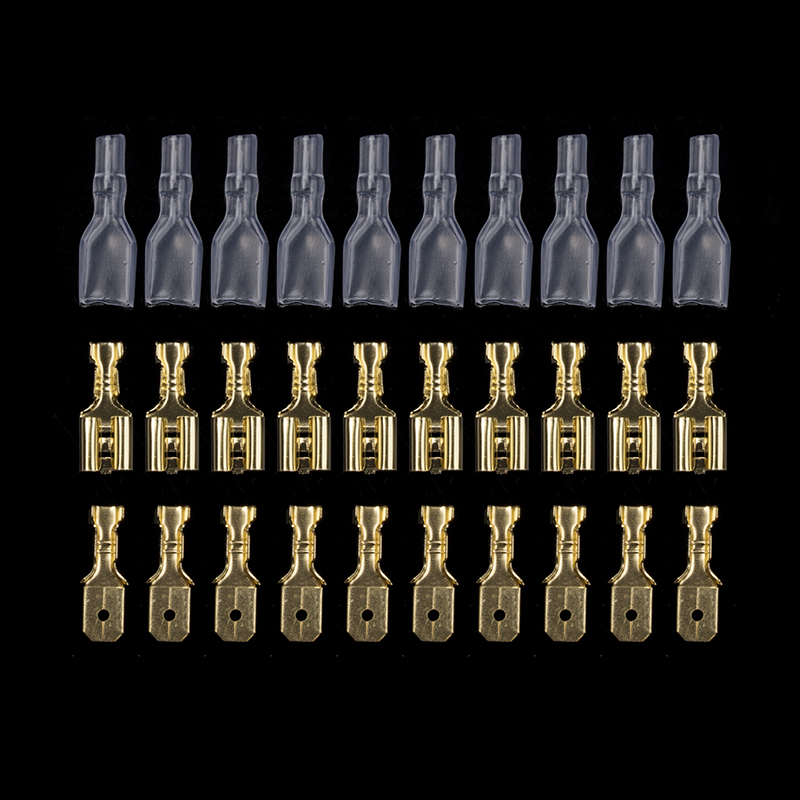 Krátký popis Sada plochých konektorů 6,3 mm s izolací, 200ks.   Technické parametry: • materiál: měď, silikon • max.