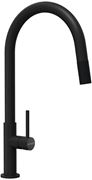 Stojánková dřezová baterie, provedení Černá (nástřik), výška 398 mm, vytahovací koncovka s přepínačem na sprchu, pro otvor 35 mm, otočná o 360 °.