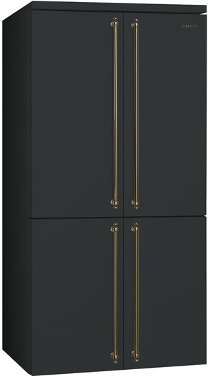 Cross door americká chladnička, 4-dvéřová, 187x92 cm, No Frost, invertor, barva antracit, externí madla/Logo v barvě starožitné mosazi, Active-Fresh Blue-Light, přihrádka s nulovou zónou Life Plus 0 °C, šuplíky na válečkových pojezdech, Multifflow-recirkulace chladného vzduchu, LED-vnitřní osvětlení