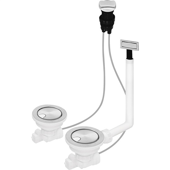 Dálkové ovládání excentrického odtoku pro vestavné dřezy vyrobené z nerezové oceli se 2 mísami a košovým sítkem Rondo 31" (instalované v armatuře nebo pracovní desce)