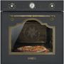 Vestavná trouba, 60 cm, pyrolýza, Pizza, antracitově černá, v designu starožitné mosazi, analogově-digitální programové hodiny, 9 funkcí, Turbo-horký vzduch, pizza kámen, objem 70 l, en.třída A