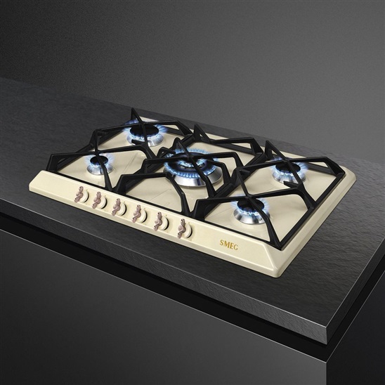Plynová varná deska, 70/75 cm, smalt v krémové barvě, počet varných zón 5, 2 DUAL UR-rapid gas zóny, 11,9 kW, litinové rošty
