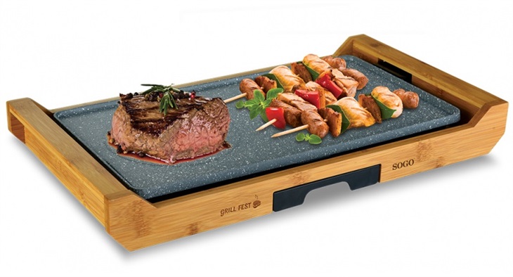 Stolní gril s GRANITOVÝM povrchem, který je nepřilnavým a odolný proti poškrábání. Deska 43 x 23 cm - s horkou zónou o průměru 15 cm a o 20 °C vyšší teplototu pro dokonalé a rychlé vaření. Ideální pro použití jako gril nebo japonská varná deska Teppanyaki. Integrovaný bambusový podnos. Teplotně izol