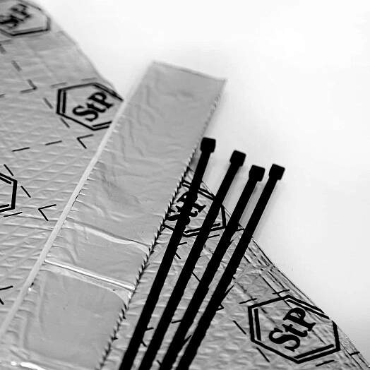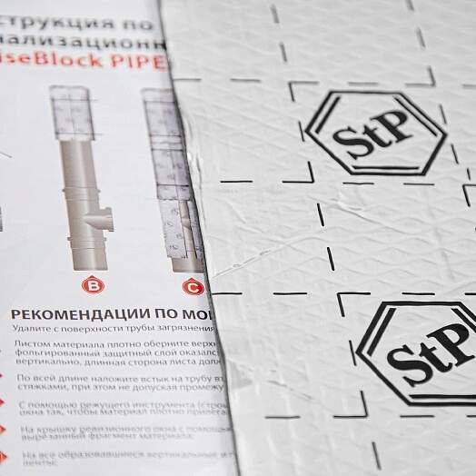 STP NoiseBlock Pipe je zvuková izolace pro kanalizační potrubí.NoiseBlock Pipe je sada zvukově izolačních desek, těsnících pásek a plastových spojek, určených pro zvukovou izolaci trubek do délky 3 metrů, o průměru 110 mm. Je navržen tak, aby snižoval hluk kanalizačního systému. Je to plech o tloušťce 6 mm, který je vyroben z vícevrstvého materiálu sestávajícího z vrstvy pohlcující zvuk, zvukově izolační membrány a metalizované čelní vrstvy.Souprava NoiseBlock Pipe je připravena k instalaci a její instalace je velmi jednoduchá: musíte odstranit nečistoty z povrchu potrubí, poté je pevně omotat po celém obvodu listy zvukově izolačního materiálu, upevnit spojkami a uzavřít všechny spoje těsnícími pásky.Výhody STP NoiseBlock Pipesnadná instalaceunikátní vícevrstvá konstrukceúčinně snižuje hluk vodovodů a kanalizacínevyžaduje instalaci zvukotěsných krytůširoký rozsah provozních teplot od -40°C do +80°CSouprava NoiseBlock Pipe je určena pro zvukovou izolaci 3 metry dlouhého potrubí.Tloušťka plechu materiálu: 6 mmRozměry: 385 x 500 mmObsah balení:zvukově izolační plechy – 6 kstěsnicí pásky – 12 ksplastové kravaty – 14 ks