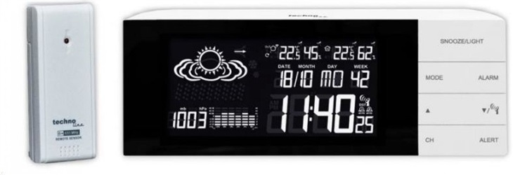 Krátký popis Meteorologická stanice TechnoLine inverzní displej o rozměrech 126 x 60 mm s možností krátkodobého osvětlení při napájení bateriemi, se stálnýmosvětlením při napájení síťovým adaptérem