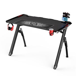 Krátký popis ULTRADESK Herní stůl INVADER - BLACK, 120x64 cm, 75 cm, podsvícený, s XL podložkou pod myš, držák sluchátek i nápojů