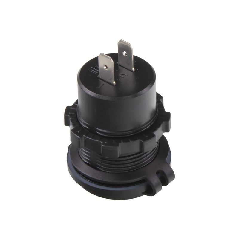 Krátký popis USB nabíječka do panelu, QC3.0 + USB-C, s krytkou proti prachu a vlhkosti. Pomocí tlačítka lze př