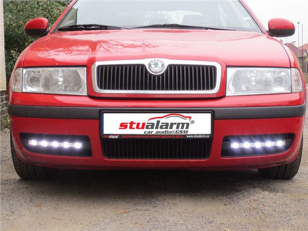 Světla pro automatické denní svícení s LED pro Škoda. Světla jsou zabudována v mřížce nárazníku.