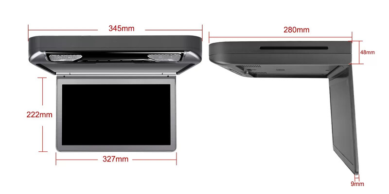 Základné informácie: 13,3“ 1080P 1080P video HD digitálny TFT stropný monitor 16:9 so širokouhlým displejom, DVD prehrávač s HDMI portom.